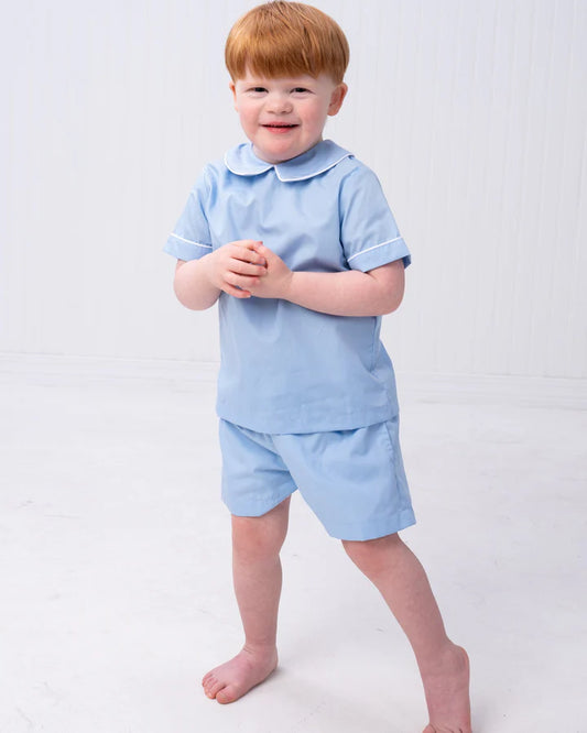 North Carolina Smocked Light Blue Gingham Short Sleeve Boys