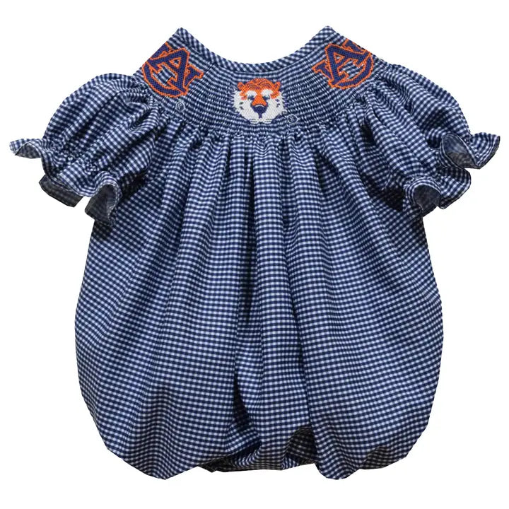 Auburn Tigers Smocked Navy Giangham Short Sleeve Girl Bubble