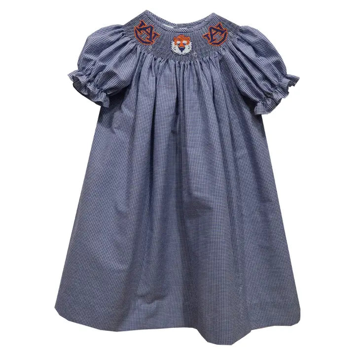 Auburn Tigers Smocked Navy Gingham Short Sleeve Bishop